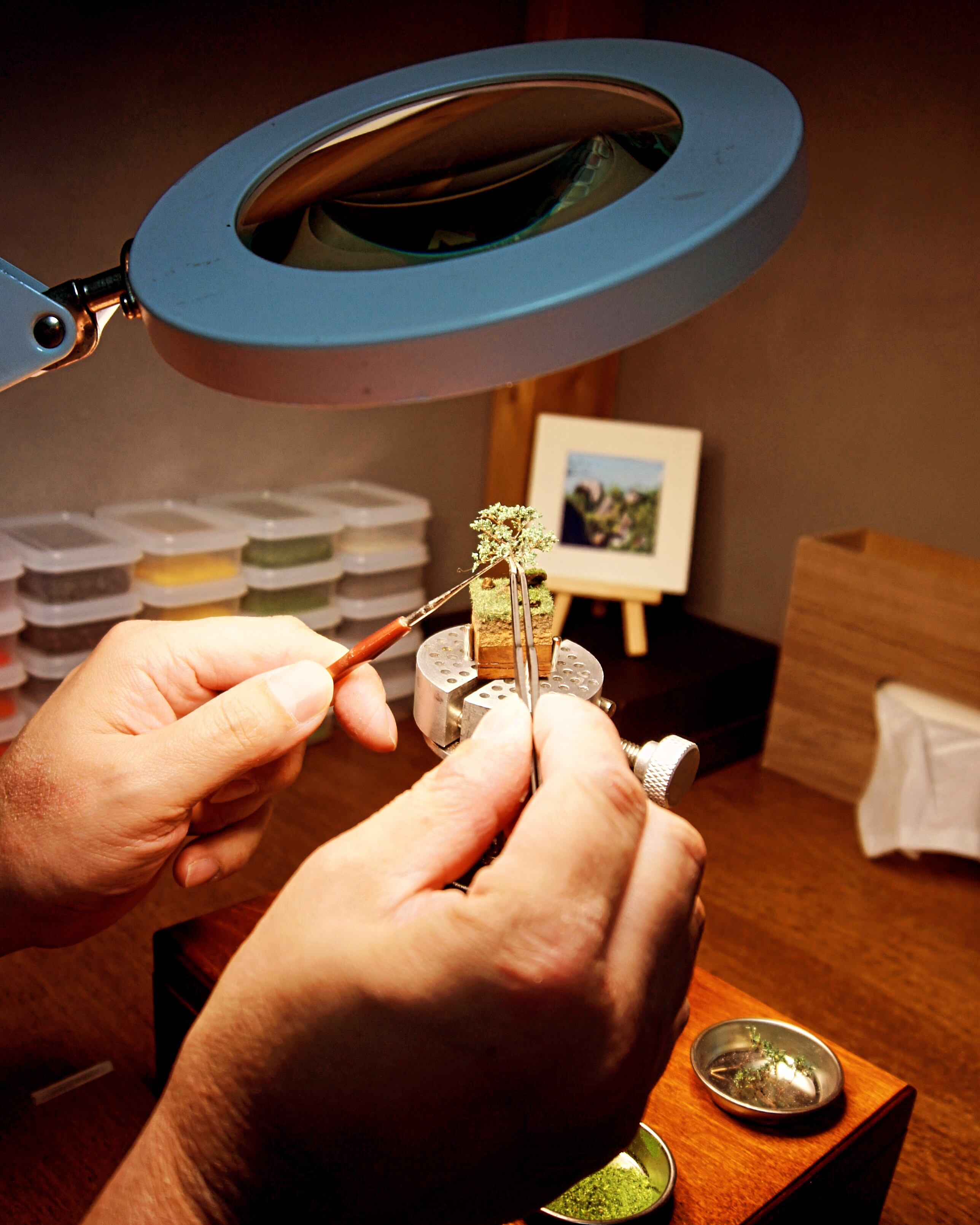 四季や豊かな緑、水辺の風景などを量産品では再現できない精密さで再現しました。